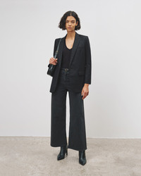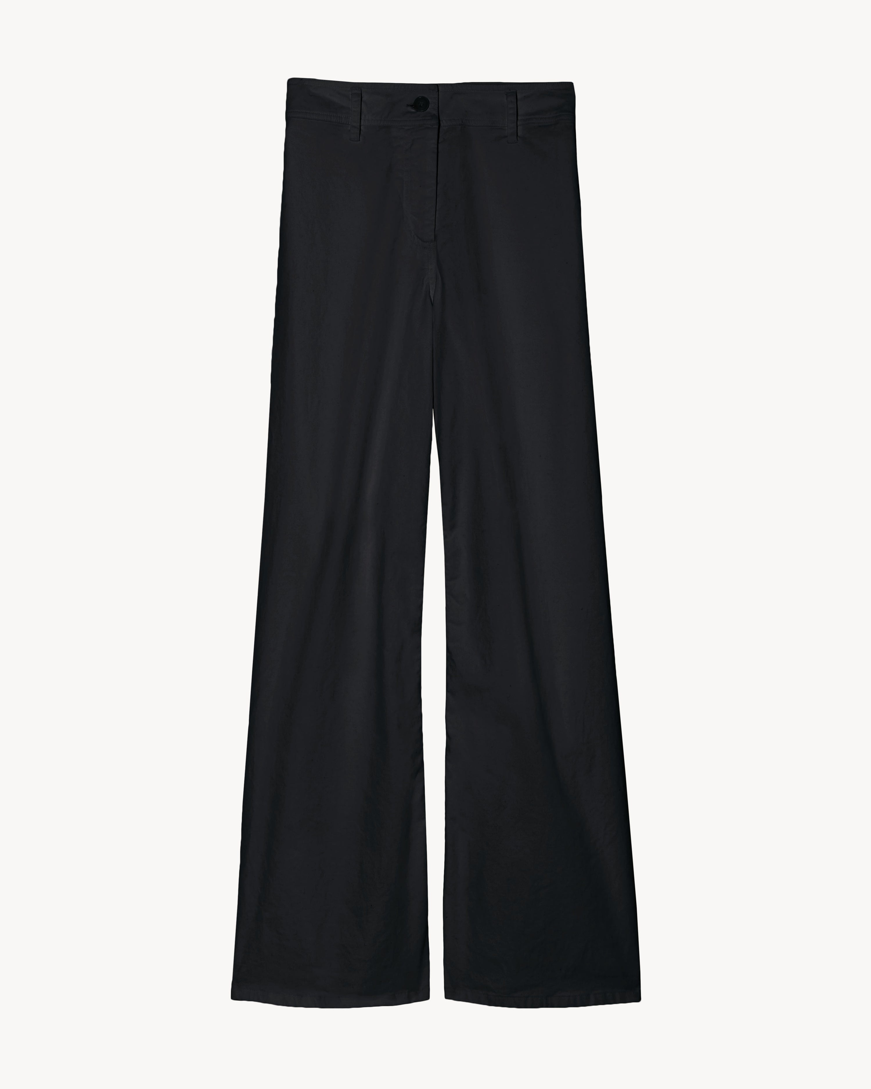 High-rise wide-leg pant in soft brushed stretch twill. Fitted through waist and hip, opens to easy leg. Shorter inseam, hits at ankle. Zip fly and button closure. Clean flat front, with no pockets. Back patch pockets. Made in USA SIZE & FIT Model is 5'11 and wears a size 4. For exact measurements by size, view our size guide. COMPOSITION & CARE 98% COTTON, 2% ELASTANE MACHINE WASH COLD DO NOT BLEACH TUMBLE DRY LOW LOW IRON