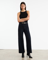 High-rise wide-leg pant in soft brushed stretch twill. Fitted through waist and hip, opens to easy leg. Shorter inseam, hits at ankle. Zip fly and button closure. Clean flat front, with no pockets. Back patch pockets. Made in USA SIZE & FIT Model is 5'11 and wears a size 4. For exact measurements by size, view our size guide. COMPOSITION & CARE 98% COTTON, 2% ELASTANE MACHINE WASH COLD DO NOT BLEACH TUMBLE DRY LOW LOW IRON