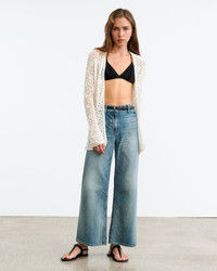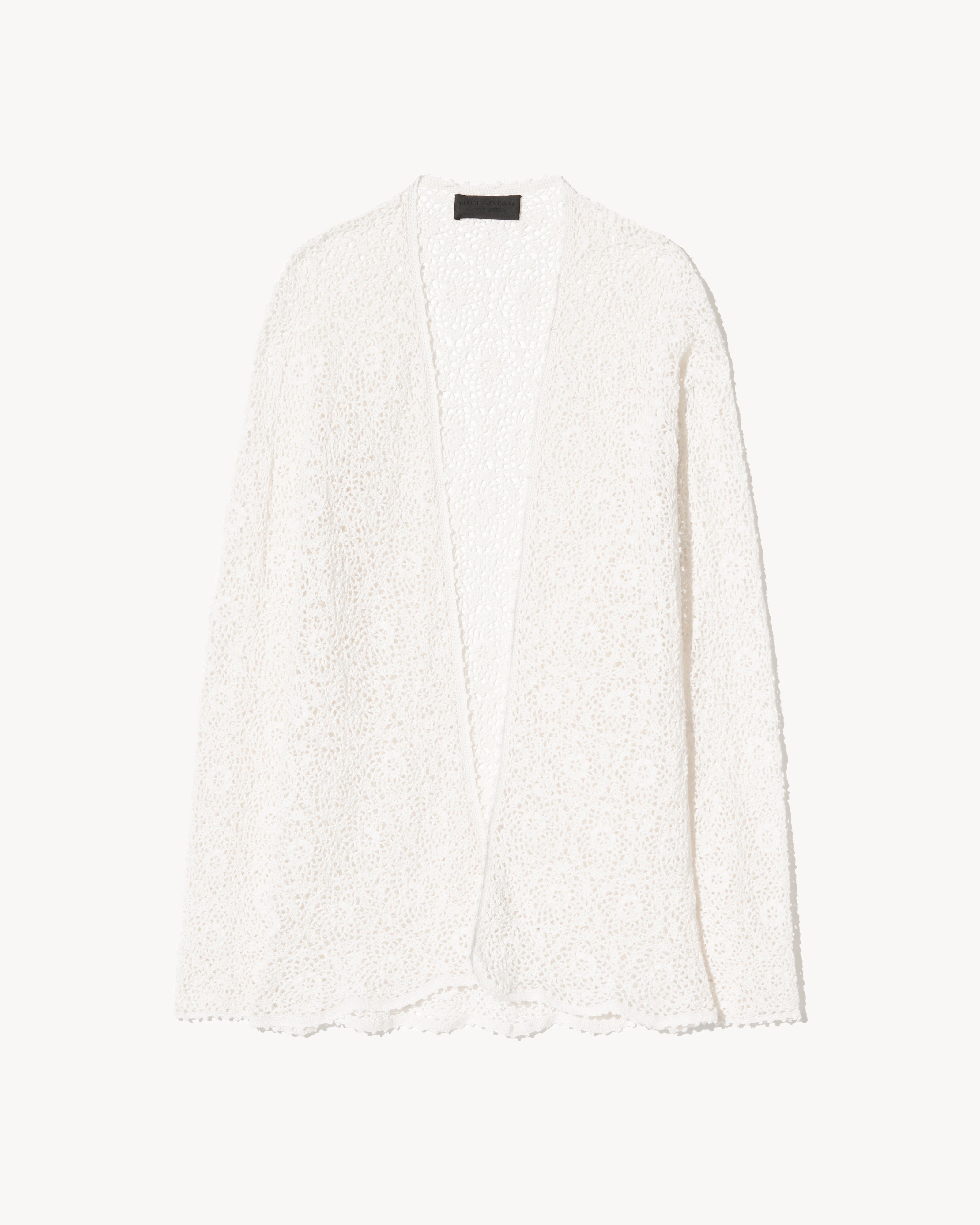 Open cardigan in Peruvian cotton. Custom floral compact crochet. Completed by hand. No seam. Wave detail at hem. Bauble detail at hem. COMPOSITION & CARE 100% Cotton Dry clean recommended