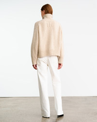 Chunky weight boxy turtleneck. High neck designed to be worn up, but easily able to fold over. Dropped shoulder. Rib start at hem and sleeve. Fashioning along arm hole. Signature center back cable knit detail. - 90% Cashmere 10% Silk - Dry clean recommended