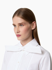 This adjustable bow tie in white cotton poplin adds a refined finish to any dressed-up silhouette. Perfect for elevating an evening look or refining a classic suit, it embodies the sophisticated elegance of the Nina Ricci style. COMPOSITION & DETAILS - 100% organic cotton. - Bow tie closure. - One size fits all. - Ref: 25ACAC006CO1077U1000