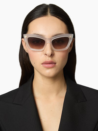 A modern take on the timeless cat-eye, these acetate sunglasses blend elegance with contemporary flair. The temples feature a bold geometric design, defined by sleek lines and sharp angles for a striking silhouette. The iconic gros-grain pattern, delicately engraved on the wire-core, adds a subtle yet sophisticated signature detail.