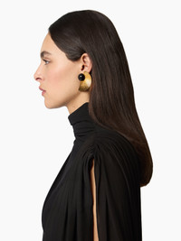 Crafted in golden brass, these asymmetrical earrings feature a half-moon silhouette paired with a bold black lacquered sphere. A subtle celestial nod with a modern twist. A creation inspired by the House’s new olfactory icon: Venus by Nina Ricci. COMPOSITION & DETAILS - 100% brass. - One size fits all. - Ref : 25ABB0164MET027M9162
