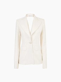 Emblematic of the Nina Ricci silhouette, the suit symbolizes timeless elegance. Harris Reed adapts and reinterprets it each season in a variety of styles. Crafted in cream wool gabardine, this single-breasted jacket features an open draped back. Paired with tailored pants from the collection, it will stand out for a total Nina Ricci look. COMPOSITION & DETAILS - 100% ethical virgin wool. - Matching single button closure. - Draped, bare back. - Flap pockets on hips. - Model is 181 cm and wears a size 36 (FR). - Ref : 25PCVE005WV0322U1230