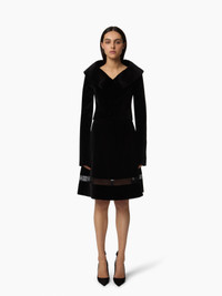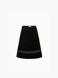 This black velvet midi skirt stands out with a sheer lace panel inserted at mid-height, subtly revealing the skin with sophistication. Its flared shape and crisp structure create an elegant, feminine silhouette. A key piece from the Fall-Winter 2025 collection, it strikes the perfect balance between sensuality and restraint, in keeping with the couture tradition of Maison Nina Ricci. COMPOSITION & DETAILS - 100% cotton. - Flared fit. - Knee length. - Elastic waistband. - Lace insert. - Model is 180 cm/ 5ft 11in and wears a size 36 (FR). - Ref: 25ACJU019CO1100U9000