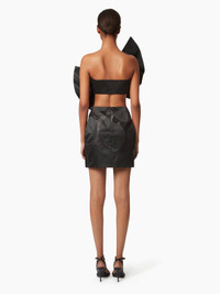 Crafted in black lurex jacquard with polka dots, this mini skirt plays on material effects and features a bow detail at the front for a bold look. COMPOSITION & DETAILS - 65% recycled polyester, 35% polyester. - High waist. - Mini length. - Invisible zip closure at back - Bow detail at front - Model is 180 cm and wears a size 36 (FR). - Ref : 25PCJU023PL0471U9000
