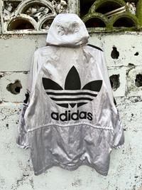 Please read descriptions and policy before buying, contact me for questions about this item. Tag Brand : Adidas Size On Tag : M-L Actual Size Measurements :- - Arm Pit To Arm Pit : 25” inches - Back Collar/Neck To Hem : 34” inches CONDITIONS :- - Good condition,nice galaxy silver colour and logo. - Have little defect,excellent condition,late 90s jacket,Made In JAPAN. - See our listing for full details and description of any imperfections. Please read descriptions and policy before buying, contact me for questions about this item. SHIPPING PROCESS :- -DHL EXPRESS =5-10 business day(ask 1st). -Economic Shipping=10-20 business day SHOP POLICY :- - NO REFUND AFTER PURCHASE!!