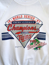C9 Please read descriptions and policy before buying, contact me for questions about this item. Tag Brand : Stedman Size On Tag : M Actual Size Measurements :- - Arm Pit To Arm Pit : 20” inches - Back Collar/Neck To Hem : 24” inches - Sleeve Lenght : CONDITIONS :- - Good conditions,nice colour and print. - Have a little yellowish stain(refer picture),no another defect,excellent vintage conditions. - Rare item for Minnesota Twins fans,wins over cardinals,it best of seven playoff at American League. - See our listing for full details and description of any imperfections. - Please don’t expect it to be like new or in pristine condition (used clothing). DELIVERY/POSTAGE :- - DHL Express/Expedited = 5-10 business day. (Message me first) - Standard Shipping/Economy/Flexipack= 10-20 business day Shop Policy - No refund after buy!!