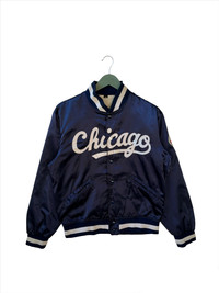 E4 Please read descriptions and policy before buying, contact me for questions about this item. Tag Brand : ??(missing tag) Size On Tag : M Actual Size Measurements :- - Arm Pit To Arm Pit : 22.5” inches - Back Collar/Neck To Hem : 24.5” inches - Sleeve Length : 24” inches CONDITIONS :- - Used condition,nice colour and Chicago patches spell. - No stain,material like satin,excellent vintage jacket. - See our listing for full details and description of any imperfections. - Please don’t expect it to be like new or in pristine condition (used clothing). DELIVERY/POSTAGE :- - DHL Express/Expedited = 5-10 business day. (Message me first) - Standard Shipping/Economy/Flexipack= 10-20 business day