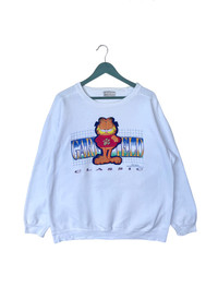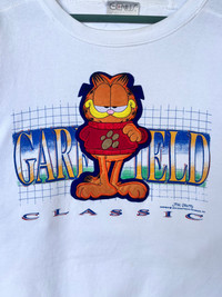 F2 Please read descriptions and policy before buying, contact me for questions about this item. Tag Brand : Genus Size On Tag : Medium Actual Size Measurements :- - Arm Pit To Arm Pit : 24.5” inches - Back Collar/Neck To Hem : 27” inches - Sleeve Length : 22.5" inches CONDITIONS :- - Good condition,nice color,patches Garfield logo. - Have yellowish stain,made in USA,excellent 90s Garfield sweatshirt. - See our listing for full details and description of any imperfections. - Please don’t expect it to be like new or in pristine condition (used clothing). DELIVERY/POSTAGE :- - DHL Express/Expedited = 5-10 business day. (Message me first) - Standard Shipping/Economy/Flexipack= 10-20 business day Shop Policy - No refund
