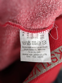 A8 Please read descriptions and policy before buying, contact me for questions about this item. Tag Brand : Quicksilver Size On Tag : Actual Size Measurements :- - Arm Pit To Arm Pit : 22.5 ” inches - Back Collar To Hem : 29.5” inches - Sleeve Lenght : 25.5" inches CONDITIONS :- - Good condition,nice colour and embroidery logo. - No stain or defect,made in Japan, excellent vintage condition. - See our listing for full details and description of any imperfections. - Please don’t expect it to be like new or in pristine condition (used clothing). DELIVERY/POSTAGE :- - DHL Express/Expedited = 5-10 business day. (Message me first) - Standard Shipping/Economy/Flexipack= 10-20 business day Shop Policy - No refund after buy!!