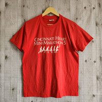 Vintage Cincinnati Heart Mini-Marathon Single Stitches TShirt 1980s Color : Red As Pictures (Colour Maybe Slightly Different From Pictures Due To Lighting & Camera) Material : Cotton Store Code : TS10 Made In : USA Tag : Hanes USA Size On Tag : L (Recomended M) Condition : Used, No Pinholes, Manual Size : Armpit To Armpit 20 inch, Length 26 inch, DO PLEASE READ CAREFULLY AND UNDERSTAND WHAT ARE YOU BUY! ALL SALES ARE FINAL NO RETURN, NO CANCEL, NO FUSSY BUYER POSTAGE BY DHL EXPRESS WITHIN 5 - 7 WORKING DAYS WORLDWIDE