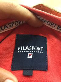 PLEASE CHECK THE MEASUREMENT BELOW CAREFULLY TAG BRAND :- FILA Sport SIZE ON TAG :- L (fit to XL) ACTUAL SIZE MEASUREMENT :- ARM PIT TO ARM PIT :- 26.5"inches BACK COLLAR TO HEM :- 30.1"inches CONDITION :- Used. Good Condition ‼️ MATERIAL :- Cotton