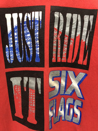 Please favourite my shop to get new update everyday for hot items. Please check measurement below for more accurate Tag brand : Six Flags Theme Park Size on tag : None (Fit To L) Actual size measurement :- ARM PIT TO ARM PIT :24.5”inches LENGHT (Back Collar Down) :28.8”inches Condition : Used.Good Condition/Have Stain Refer Picture Material : 50%Cotton 50%Polyester (C1)