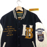 Thanks for favorites our store so that you will be able to find us Please contact me for any questions about this clothing before buying TAG BRAND :- Harvard Sports Club SIZE ON TAG :- M ACTUAL SIZE MEASUREMENT :- ARM PIT TO ARM PIT :- 22"inches BACK COLLAR TO HEM :- 24"inches CONDITION :- Used. Good Condition MATERIAL : Leather Wool please refer last picture‼️(slightly stain) #brd