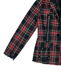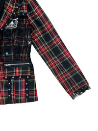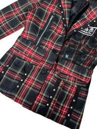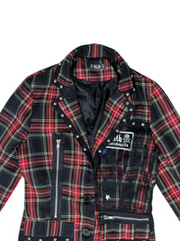 Red Tartan Punk Jacket Checkered Cross Chain Studded Blazer