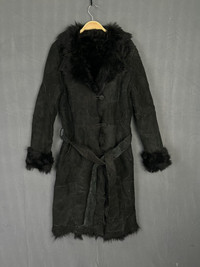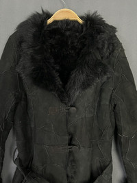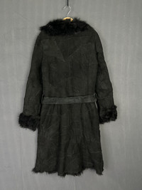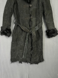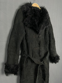 Beauty Beast - Mouton Lambskin Suede Patchwork Shearling Trench Belted Coat