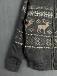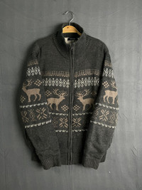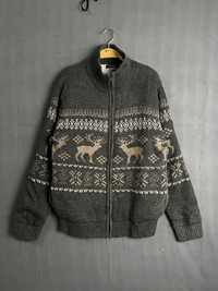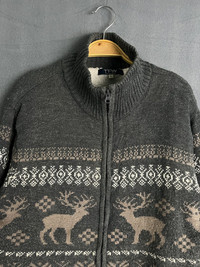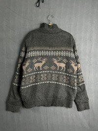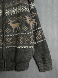 Homespun Knitwear - KNIT ZIP UP SWEATER TURTLE NECK MOOSE DESIGN