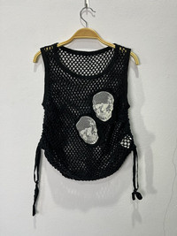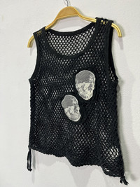 Japanese Brand - Skull Fishnet Sleeveless Stretchable Top