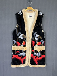 Vintage Art Painting Style Fur Vest