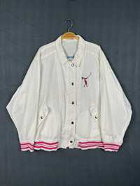 A vintage japanese brand jacket made for ladies who got in loves with playing golf. Embroidered with some sentences on the back and also logo on the chest. Condition: 8/10 Please refer the photos provided. Do chat me for more details. I’m shipping from Asia. Usually using DHL Express to ship my items worldwide taking estimated 7-21 days to your place safely without any problems so far. If you are interested with this item, please do not hesitate to chat me for more details if needed. And also i am open for a reasonable offer for you to make. Thank you. Jk0118a