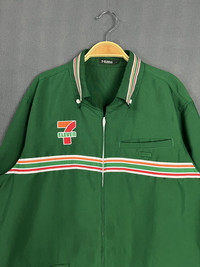Vintage - Seven Eleven 7-11 Uniform Embroidery Zipper Long Shirt Rare