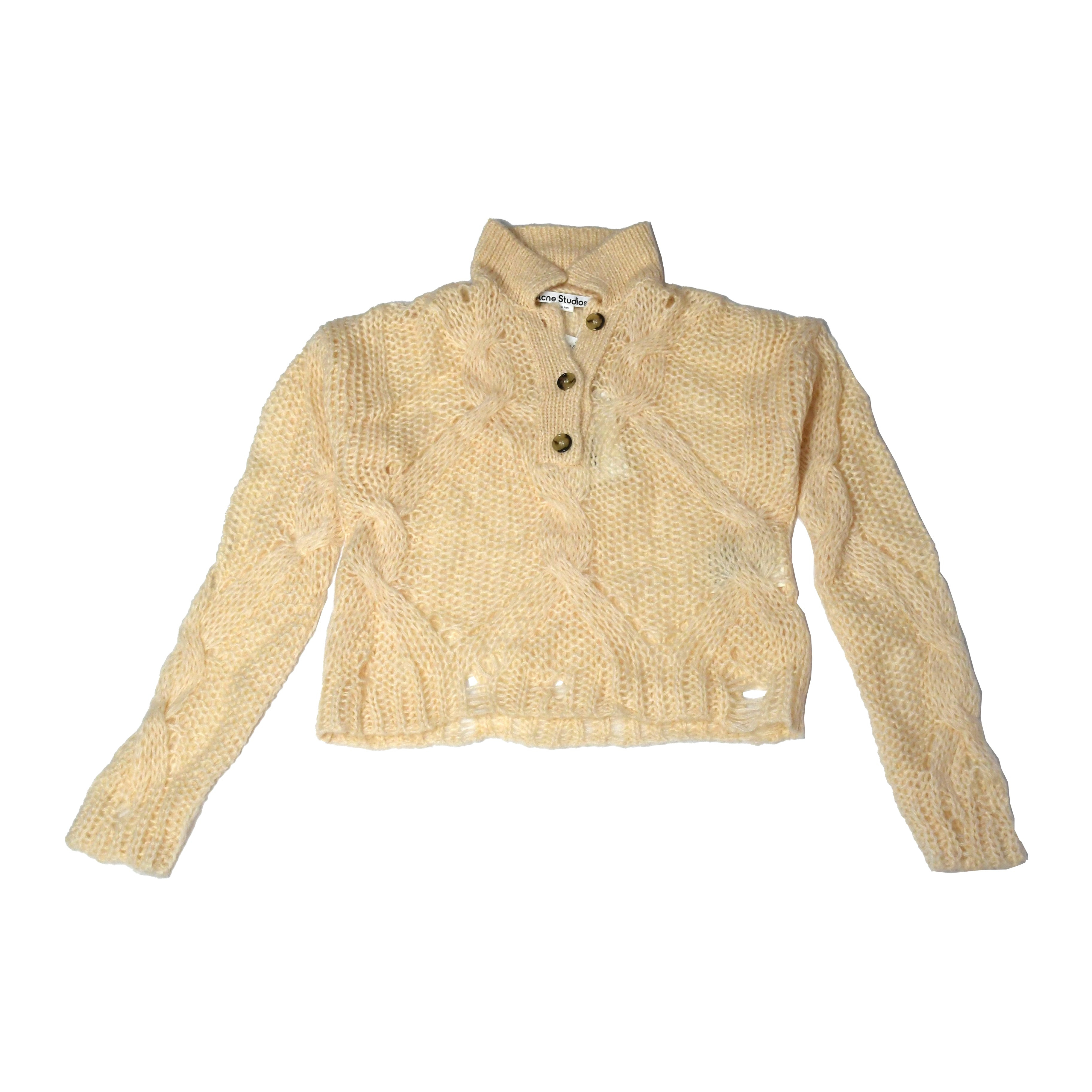 Acne Studios Korlie Cable Knit Polo Sweater Cream