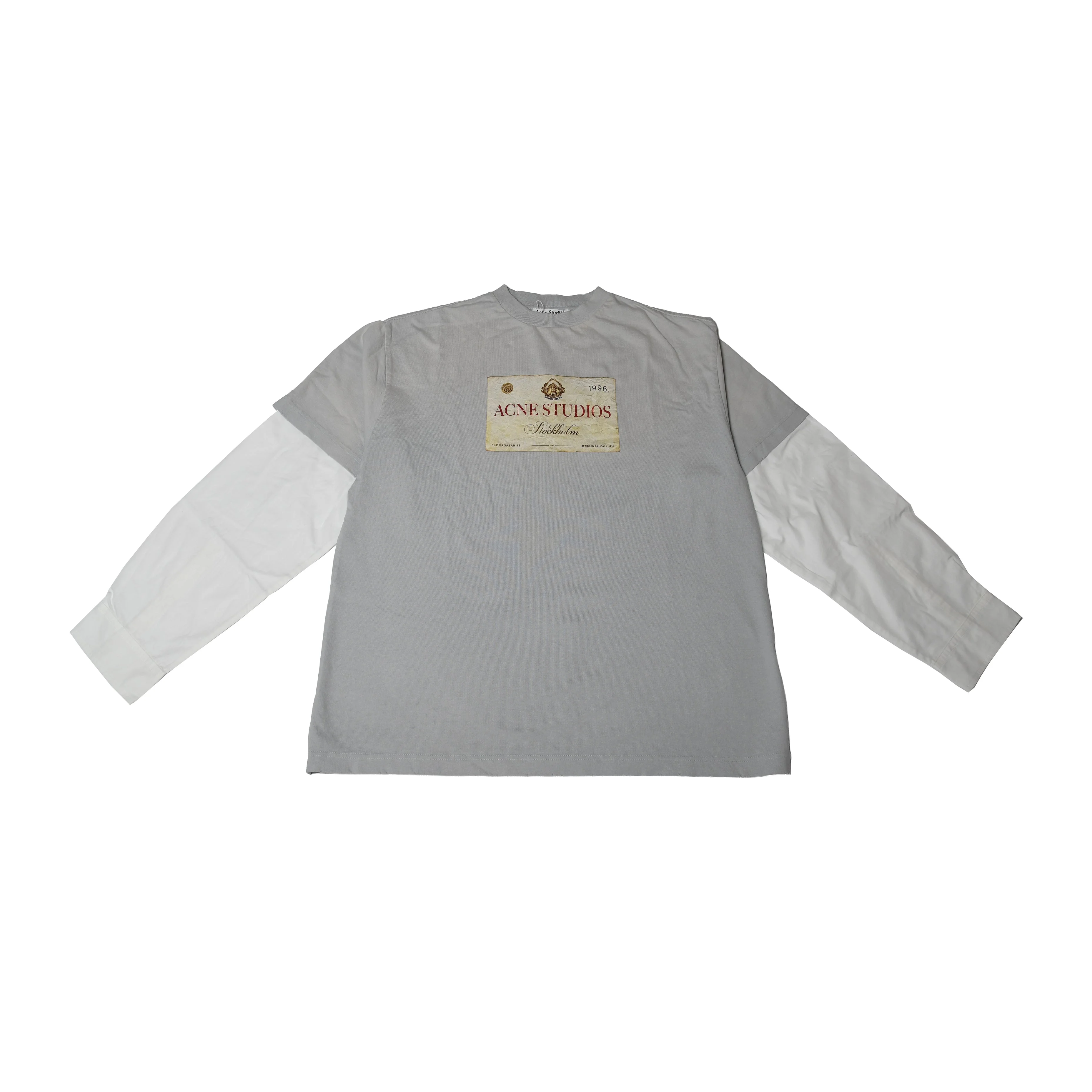 Acne Studios Layered Vintage Label Print L/S T-Shirts Light Grey