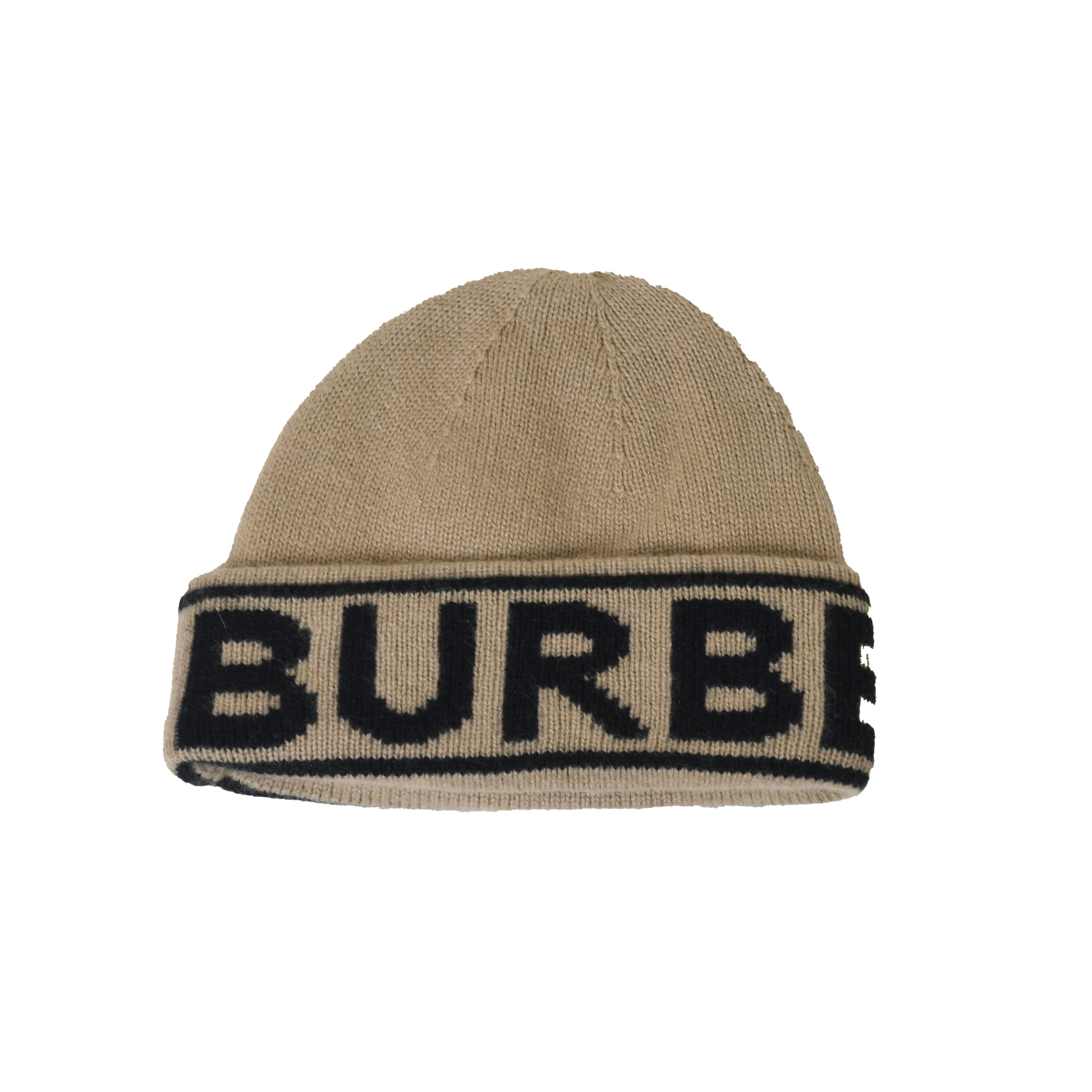 Burberry Logo Intarsia Rolled Hem Beanie Brown