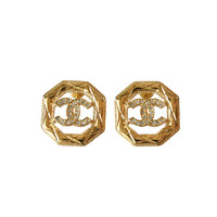 Chanel 24A CC Crystal Strass Octagonal Stud Earrings Gold