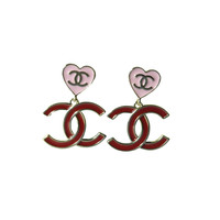 Chanel 24A Metal Enamel CC Heart Drop Earrings Gold Pink Red