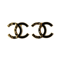 Chanel 24C CC Stud Earrings Metal with Enamel Black Gold