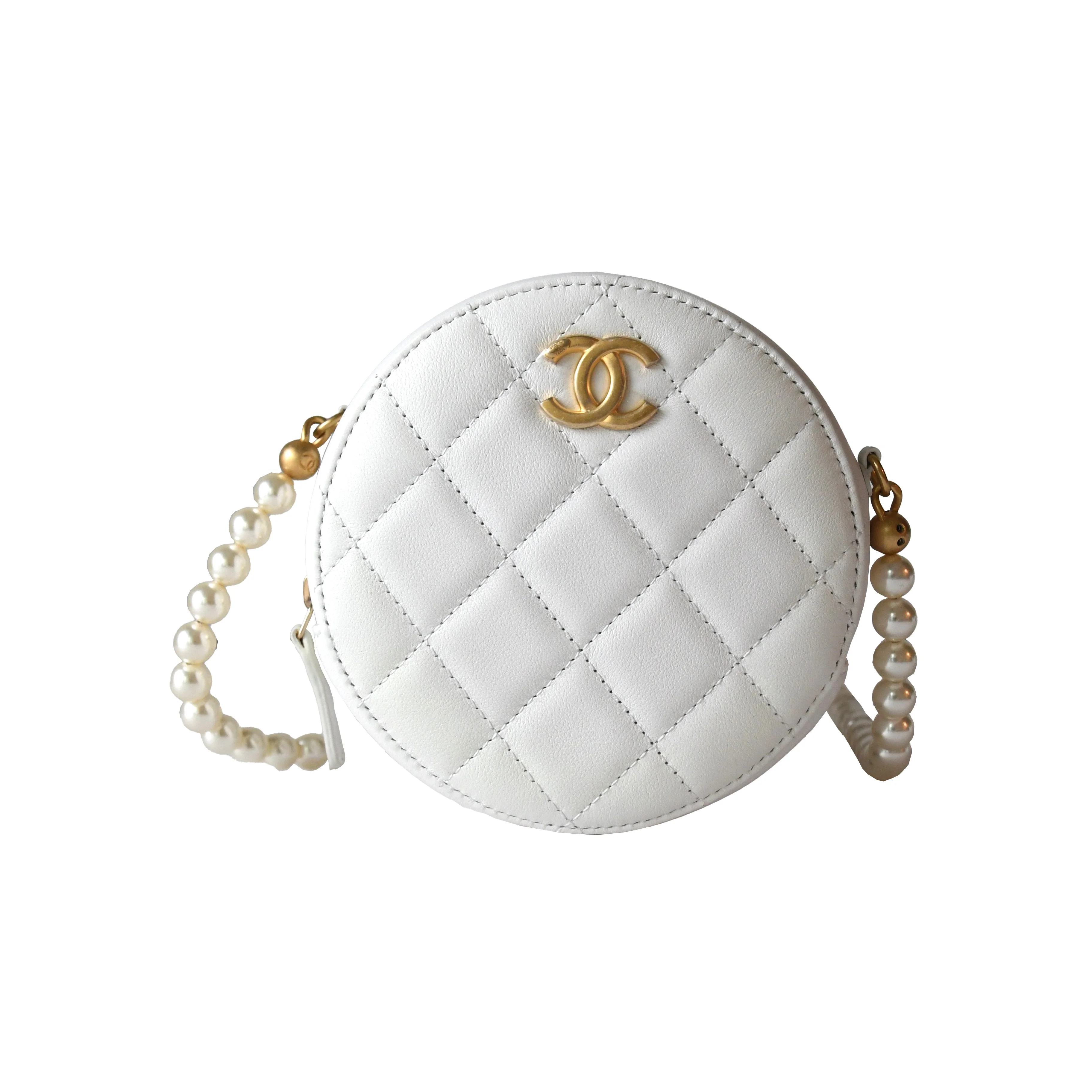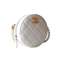Chanel Calfskin Quilted Pearl Round Clutch With Chain White