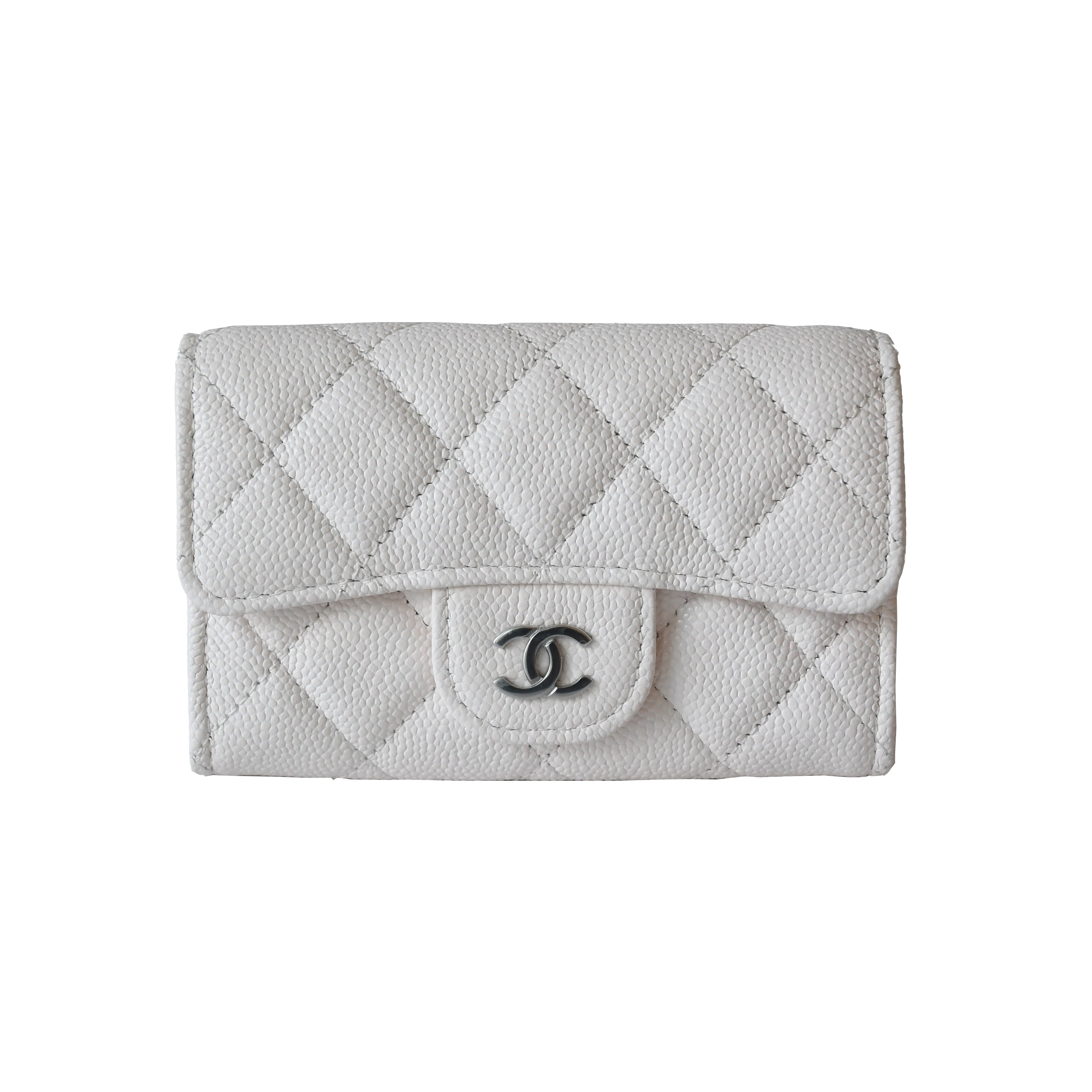 Chanel Caviar Quilted Flap Card Holder Wallet White