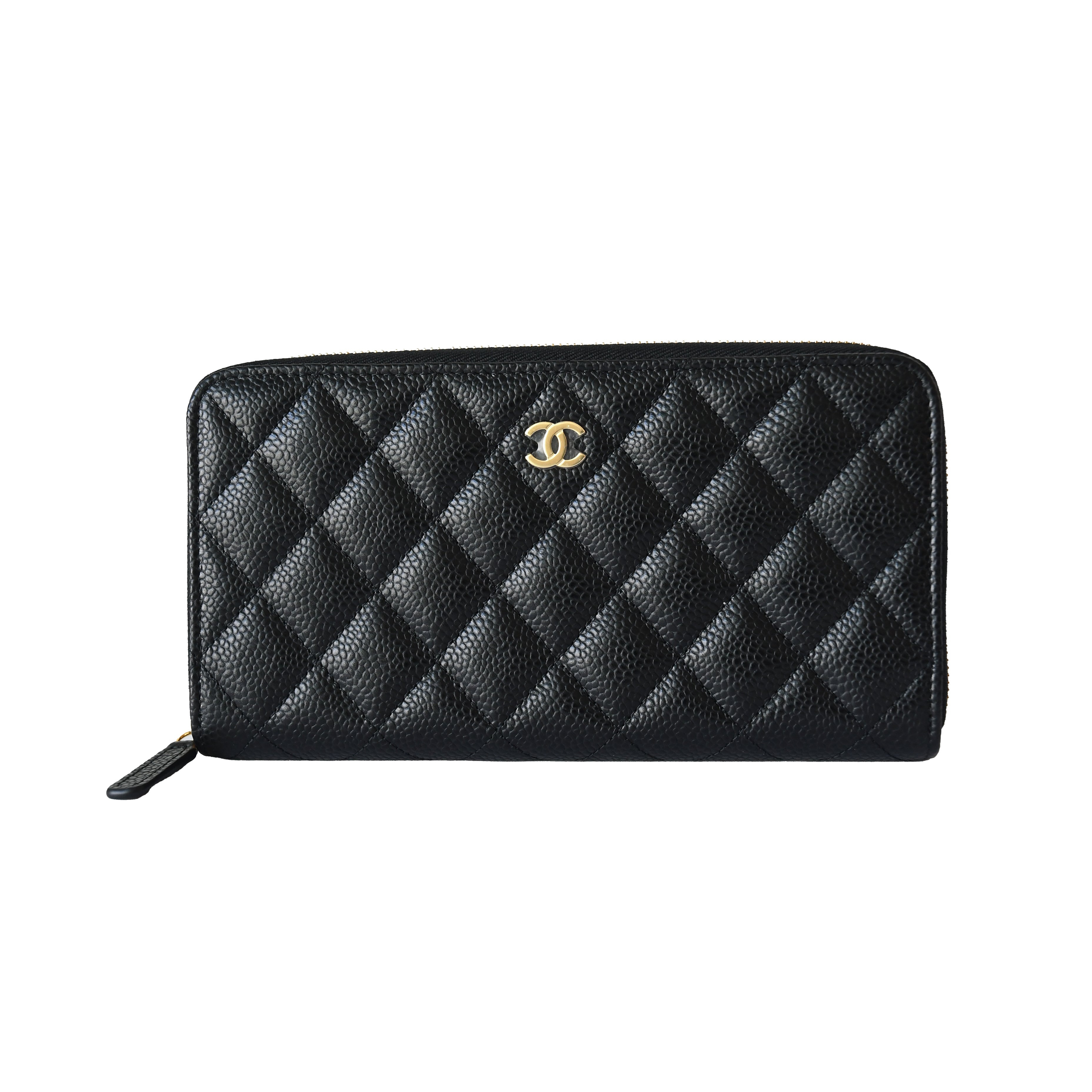 Chanel CC Caviar Quilted Large Gusset Zip Around Wallet Black