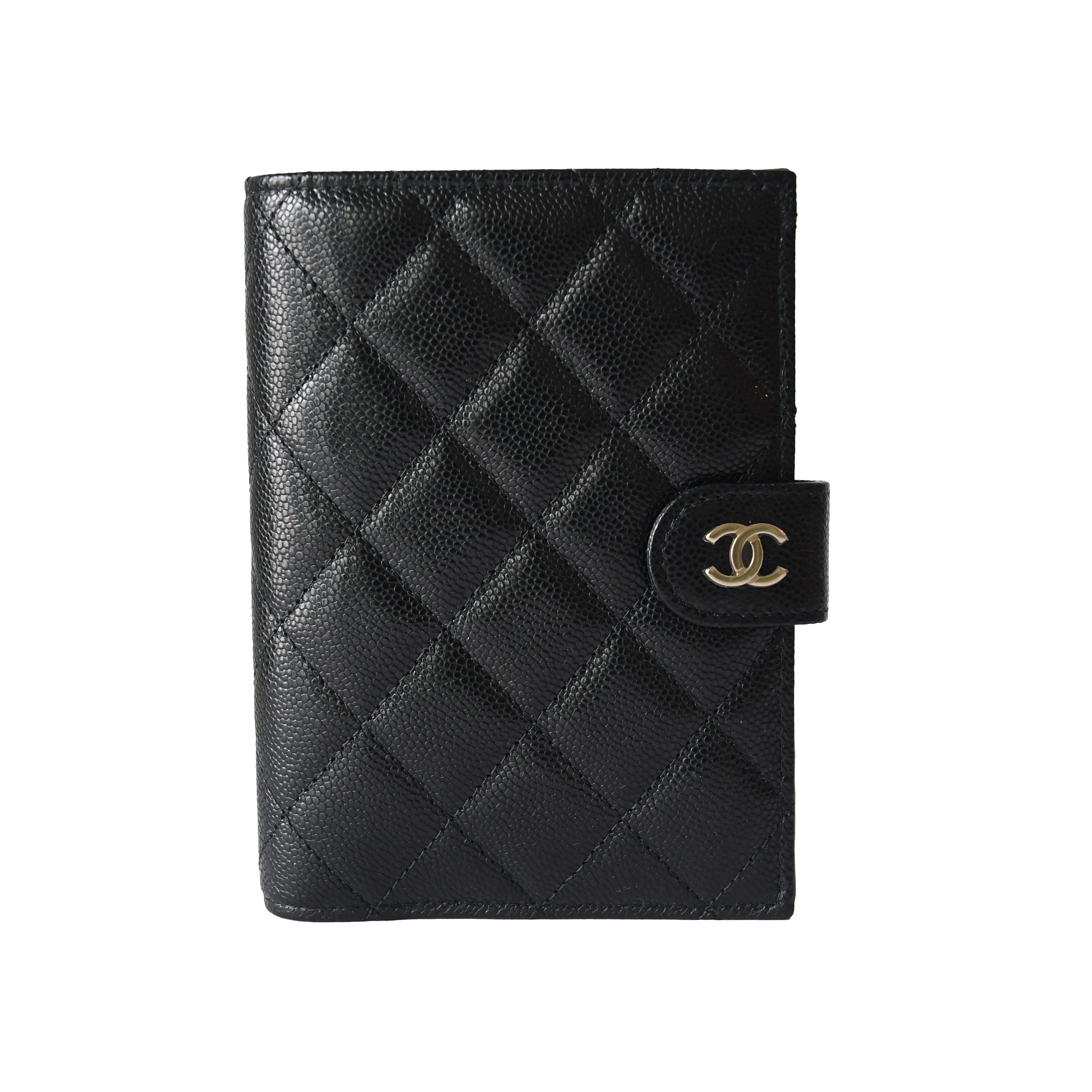 Chanel CC Caviar Quilted Passport Holder Wallet Black