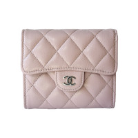 Chanel CC Caviar Quilted Trifold Compact Flap Wallet With Zipped Light Pink
