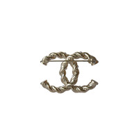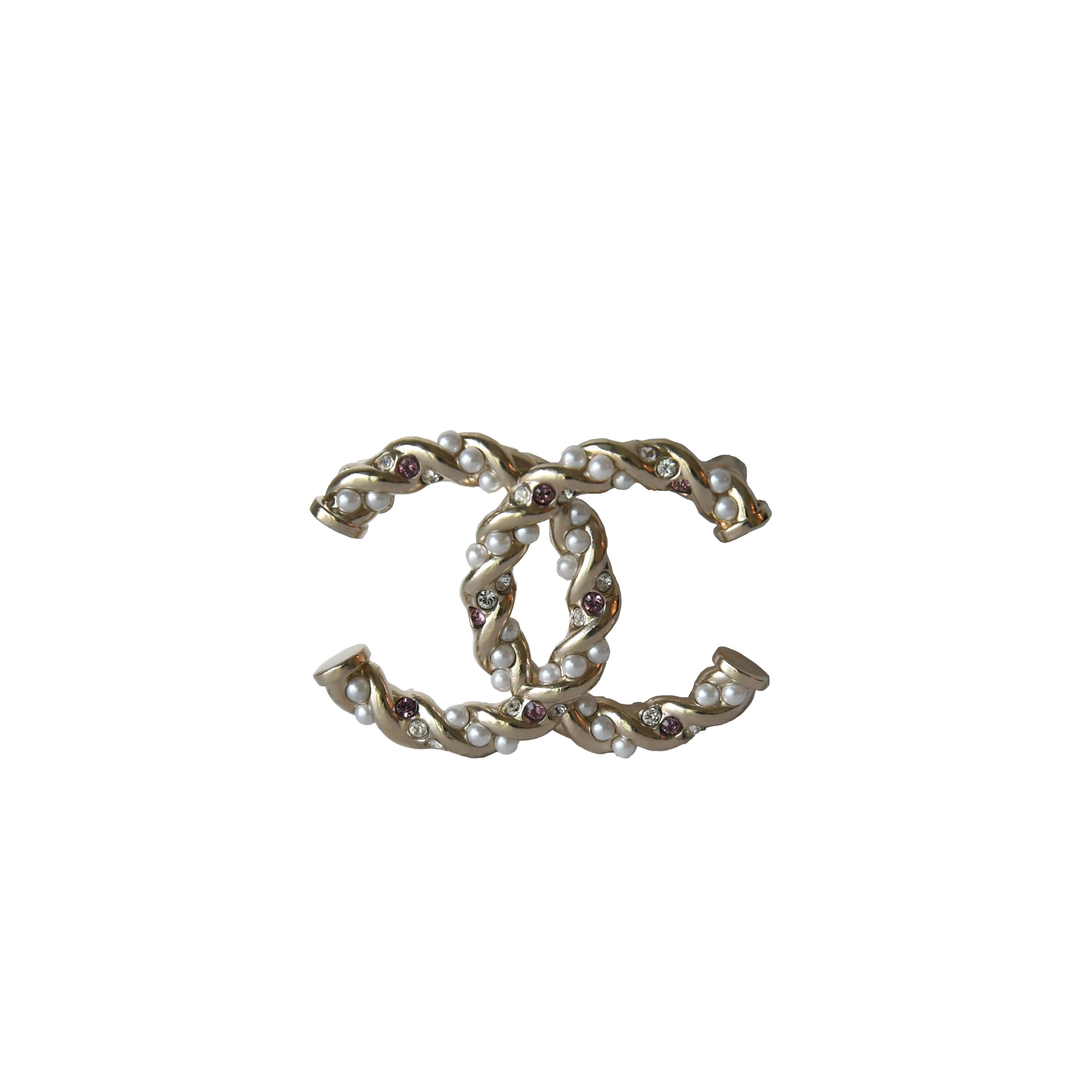 Chanel CC Crystal Strass Pearl Twisted Brooch Gold