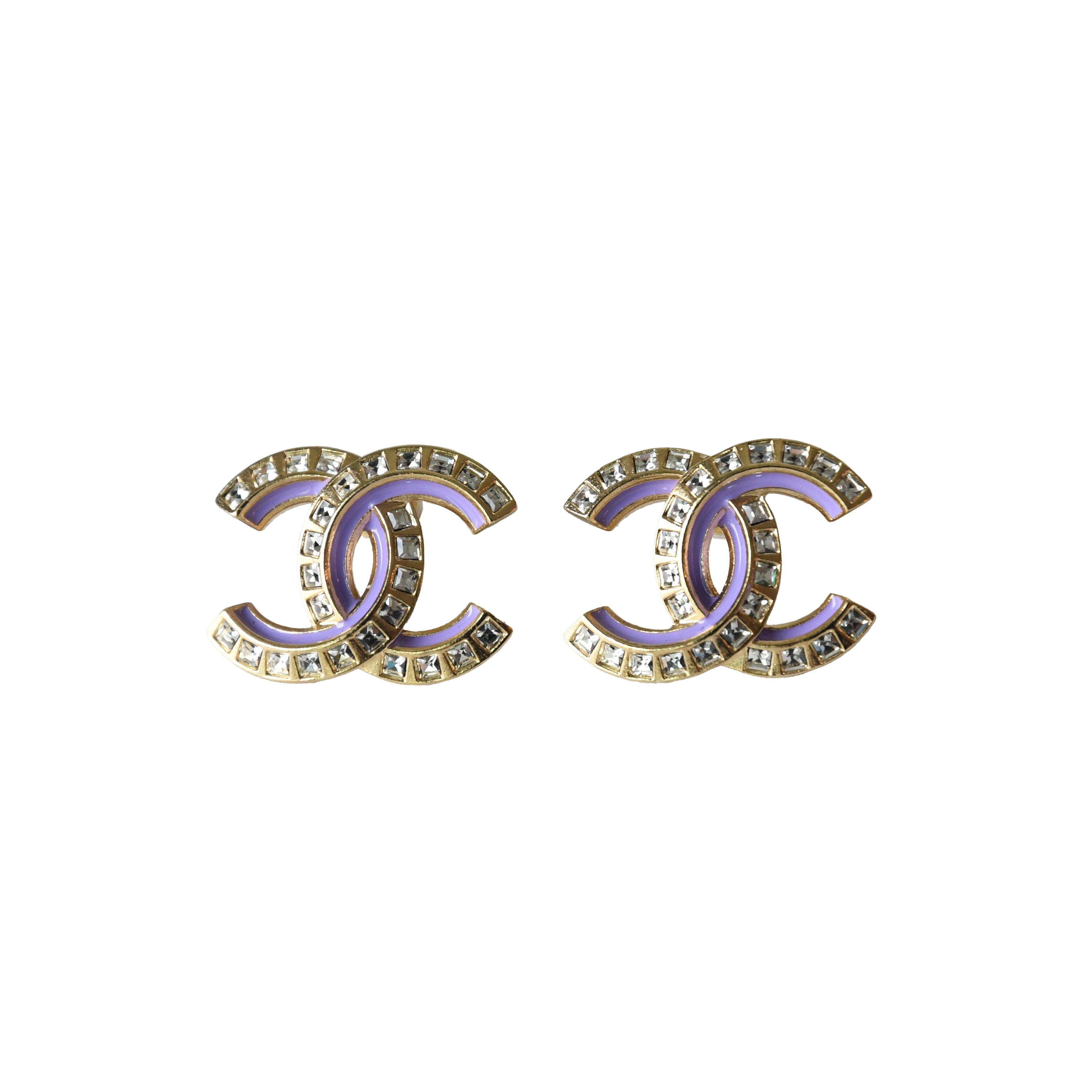 Chanel CC Crystal Strass Stud Earrings Purple Gold