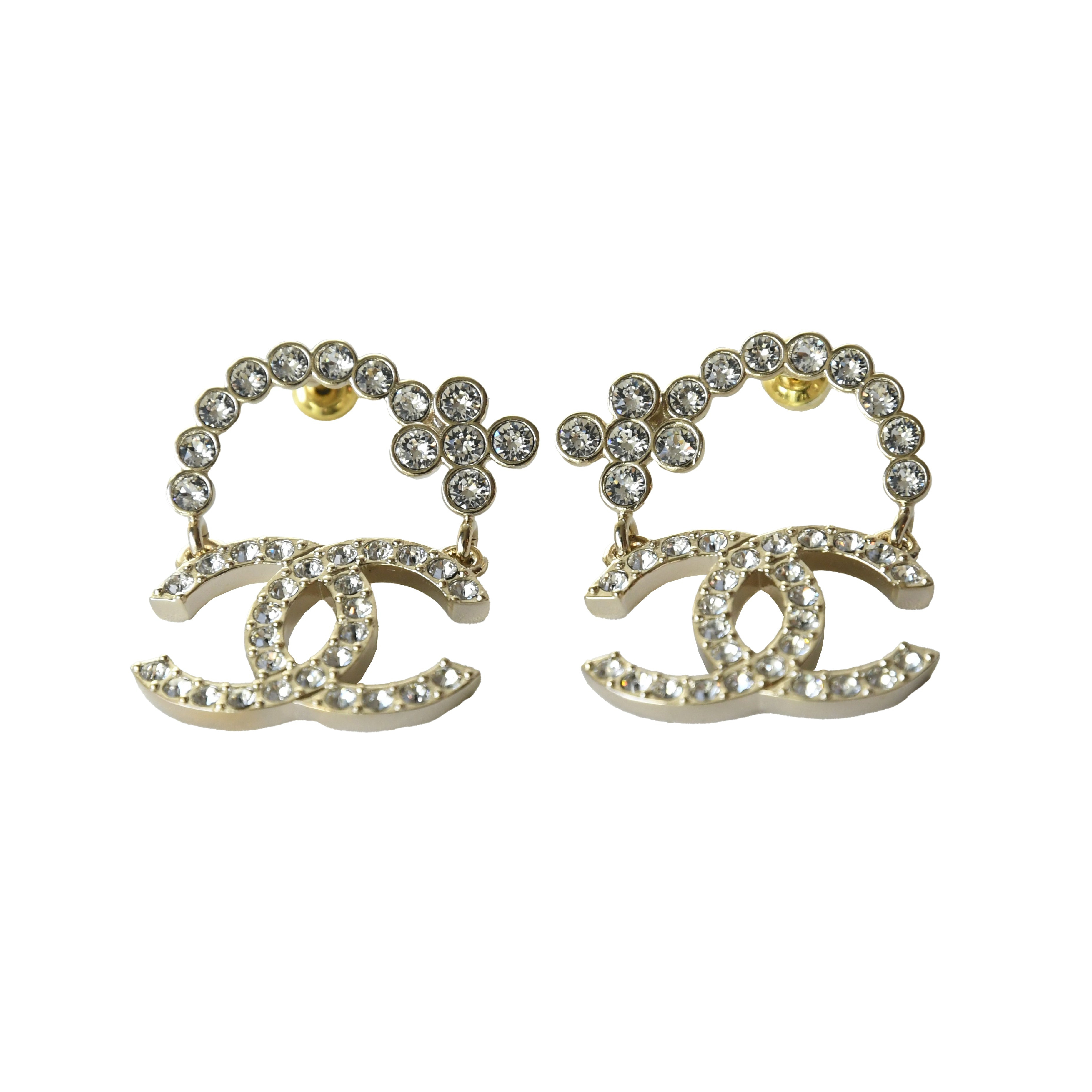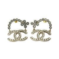 Chanel CC Flower Crystal Strass Stud Earrings Gold