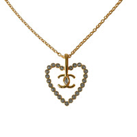 Chanel CC Heart Crystal Strass Pendant Necklace Gold