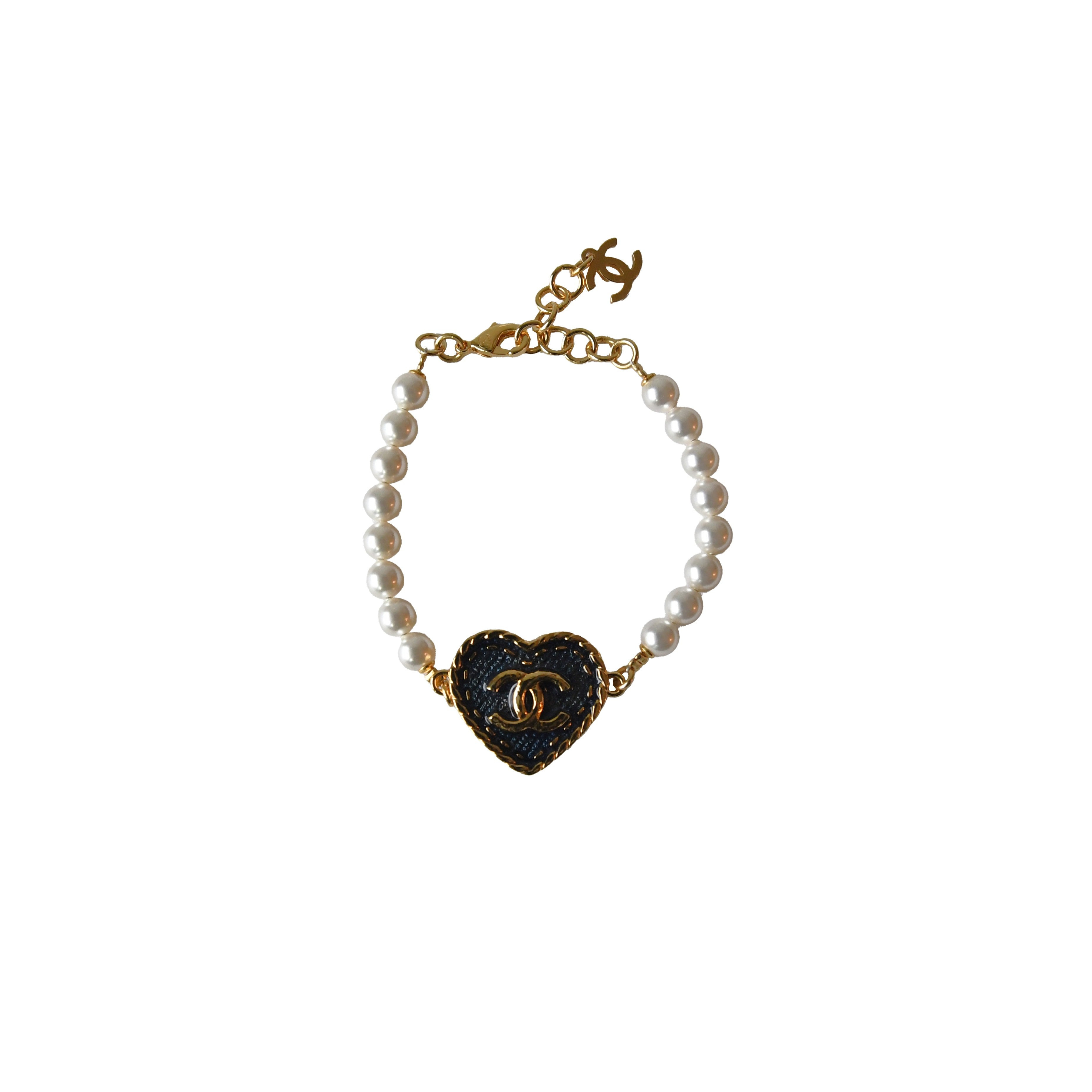 Chanel CC Heart Metal Denim Bracelet Gold Blue Pearly