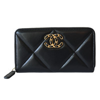 Chanel CC Lambskin Quilted 19 Long Zipped Around Wallet Black
