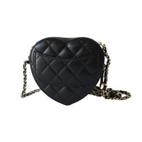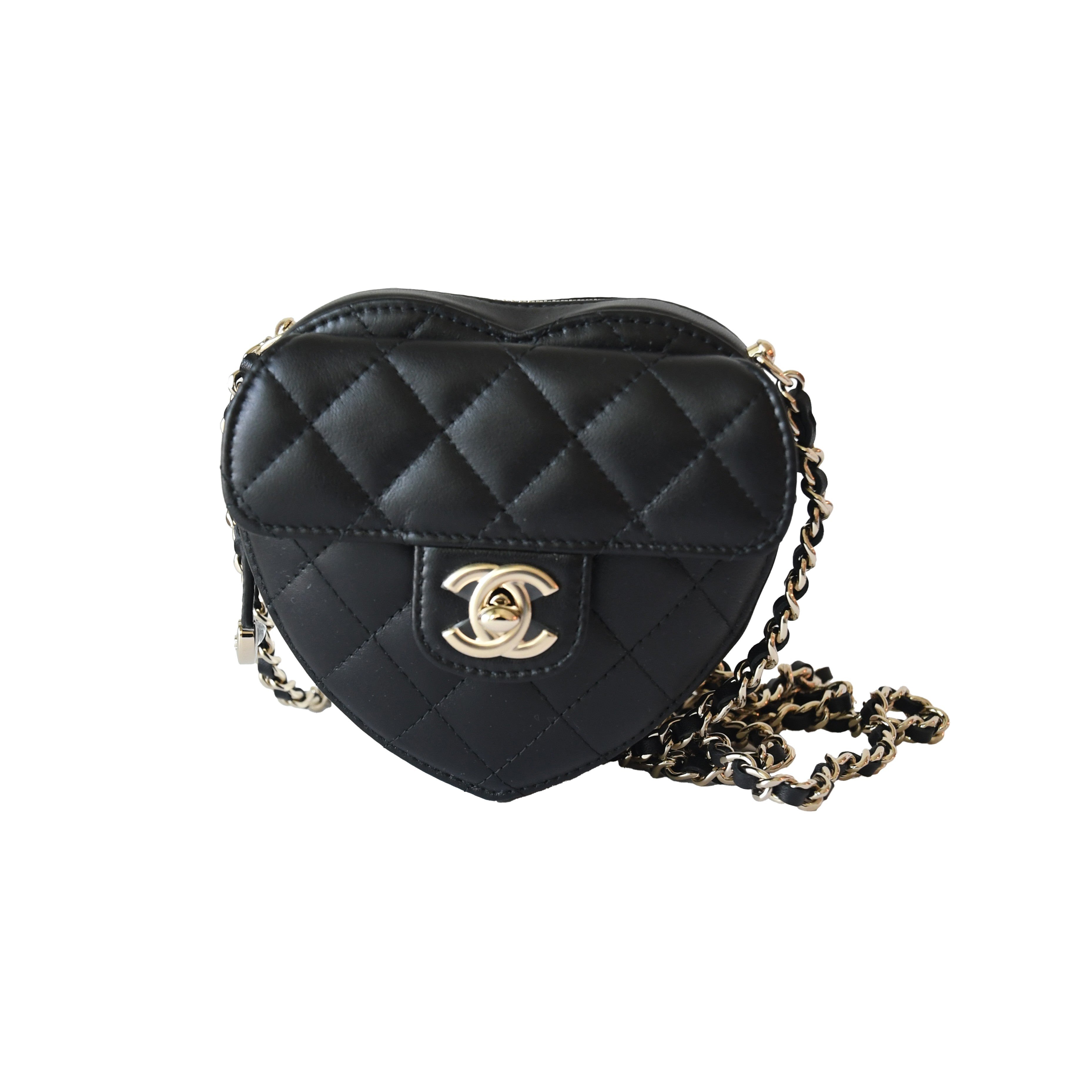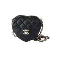Chanel CC Lambskin Quilted In Love Heart Bag Gold Hardware Black