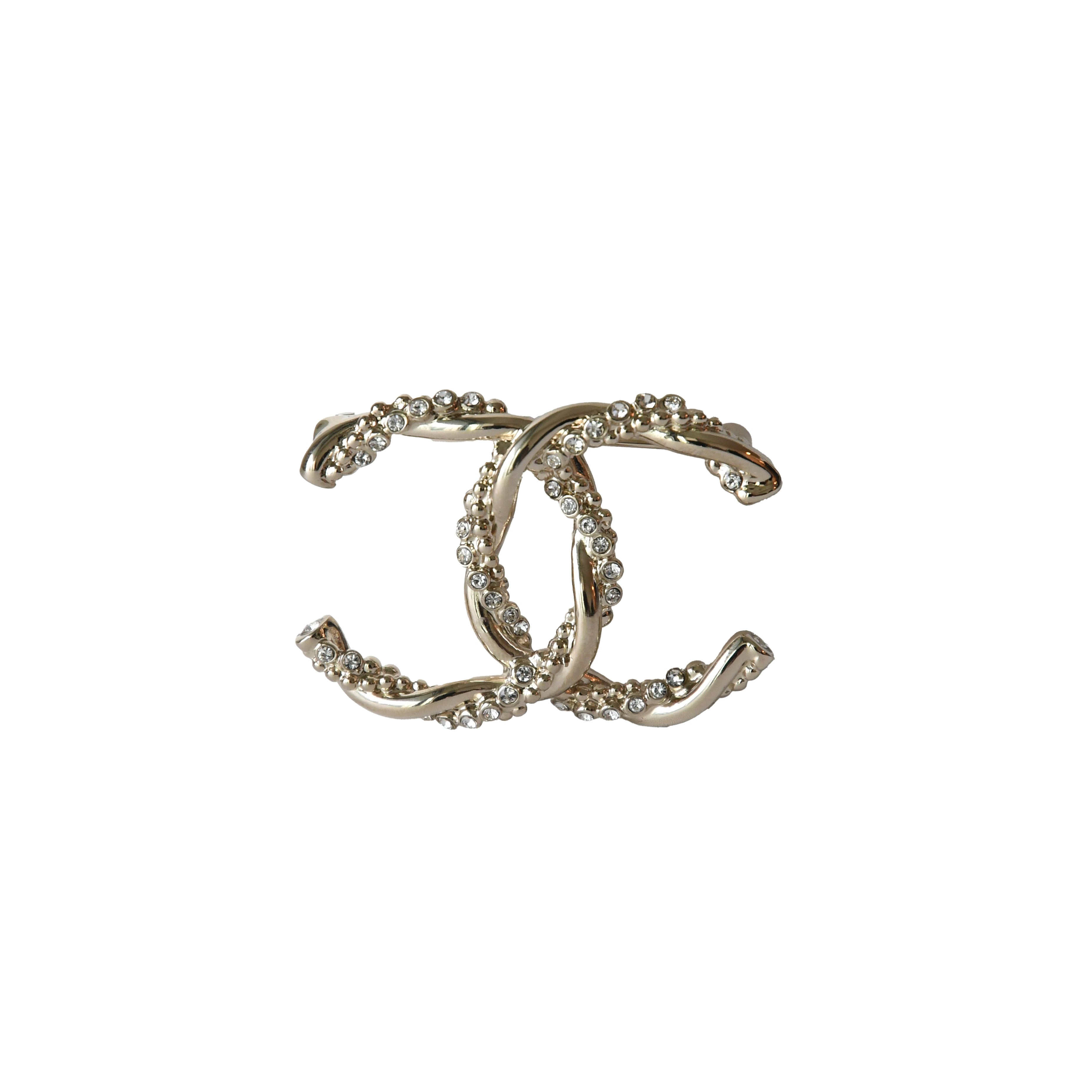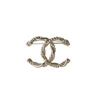 Chanel CC Metal Crystal Strass Twisted Brooch Light Gold