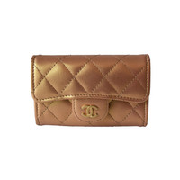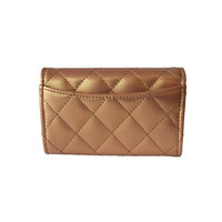 Chanel CC Metallic Lambskin Quilted Flap Card Holder Wallet Golden