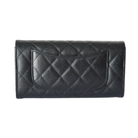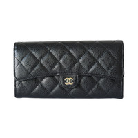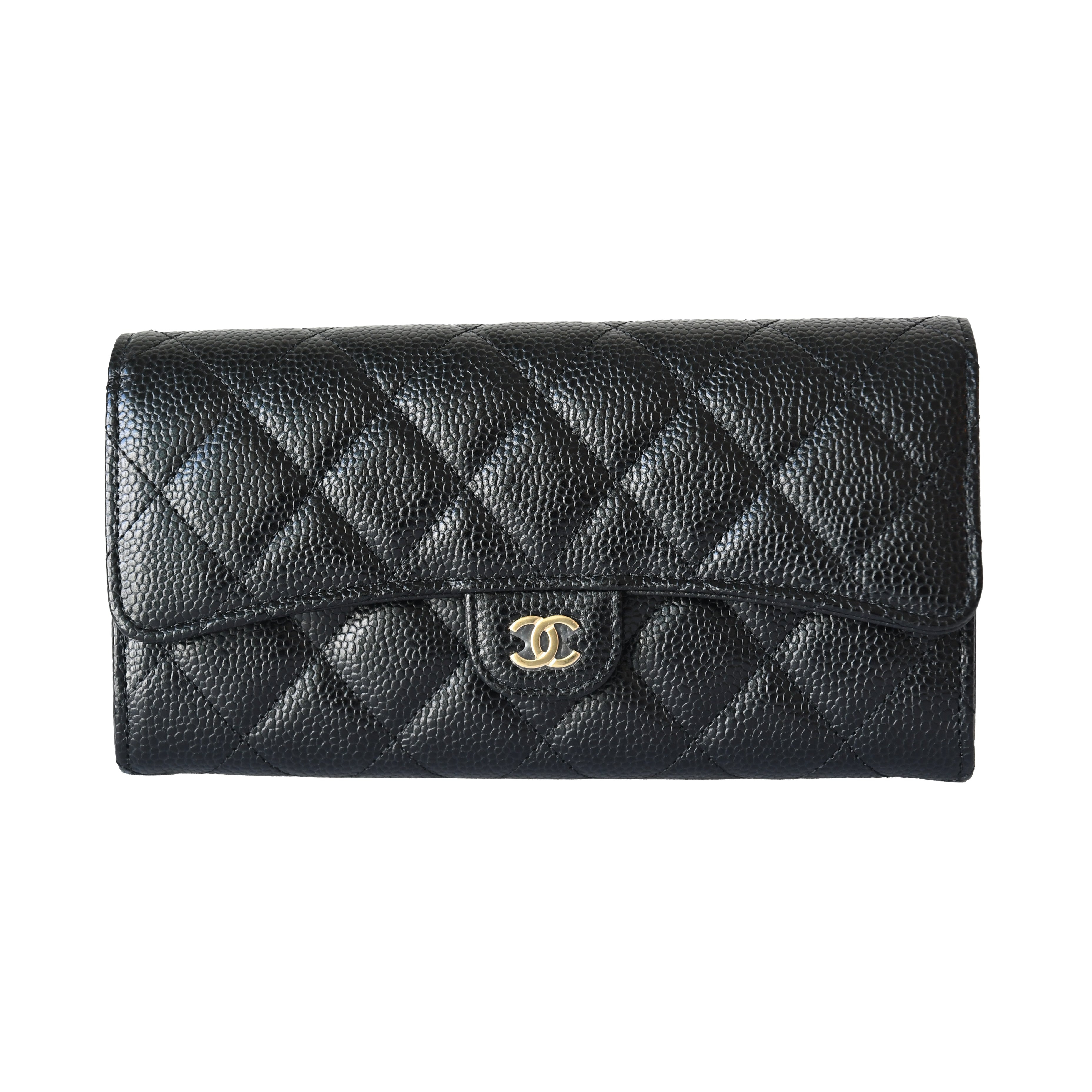 Chanel CC Quilted Caviar Continental Large Gusset Flap Wallet Gold Hardware Black