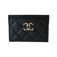 Chanel CC Resin Caviar Quilted Card Holder Black