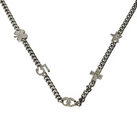 Chanel Crystal Strass Clover No.5 CC Mark Cross Star Necklace Silver