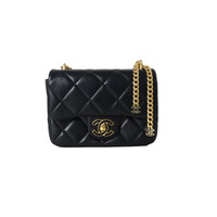 Chanel Enamel Quilted Pending CC Mini Square Lambskin Flap Bag Black Gold